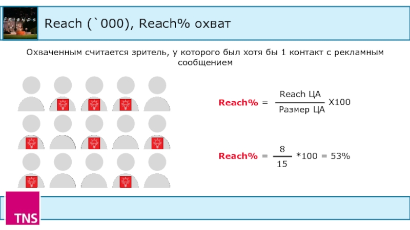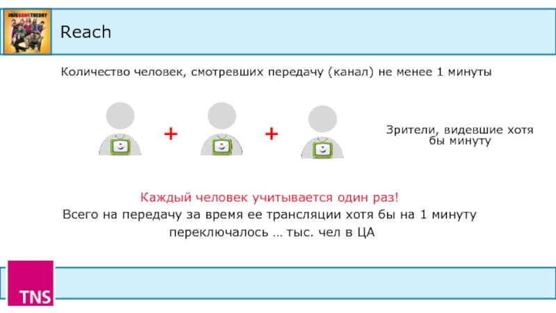 Охват (Reach)– количество смотревших канал (программу) как минимум