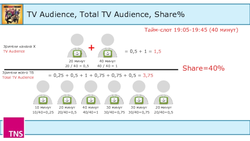 Доля (Share)– количество смотревших канал (программу) в % от телезрителей
