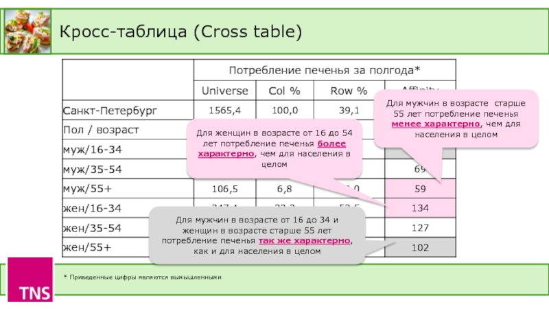 Для мужчин в возрасте от 16 до 34 и женщин в возрасте старше 55 лет потребление печенья так же характерно, как и для населения в целом