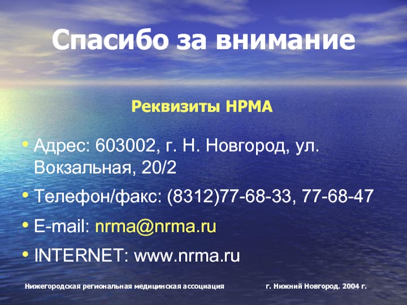 Нижегородская региональная медицинская ассоциация г. Нижний Новгород. 2004 г.