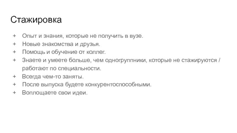 Слайд 1Стажировка во время учебы:
