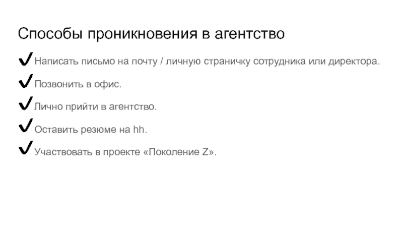 Слайд 18Способы проникновения в агентство