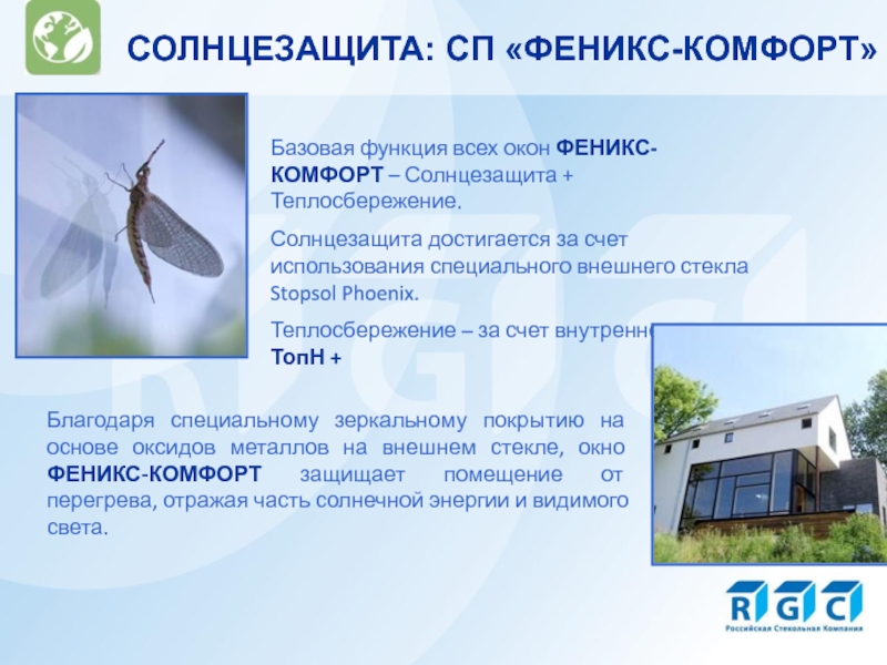 Базовая функция всех окон ФЕНИКС-КОМФОРТ – Солнцезащита + Теплосбережение.