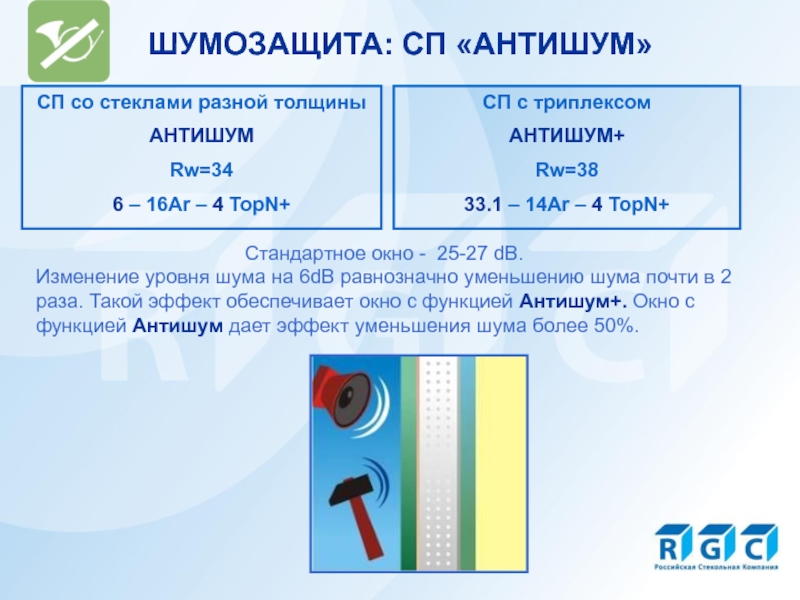 Изменение уровня шума на 6dB равнозначно уменьшению шума почти в 2 раза. Такой эффект обеспечивает окно с функцией Антишум+. Окно с функцией Антишум дает эффект уменьшения шума более 50%.