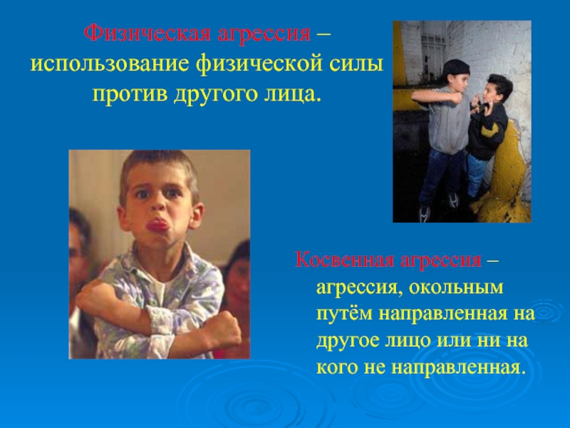 Косвенная агрессия – агрессия, окольным путём направленная на другое лицо или ни на кого не направленная.