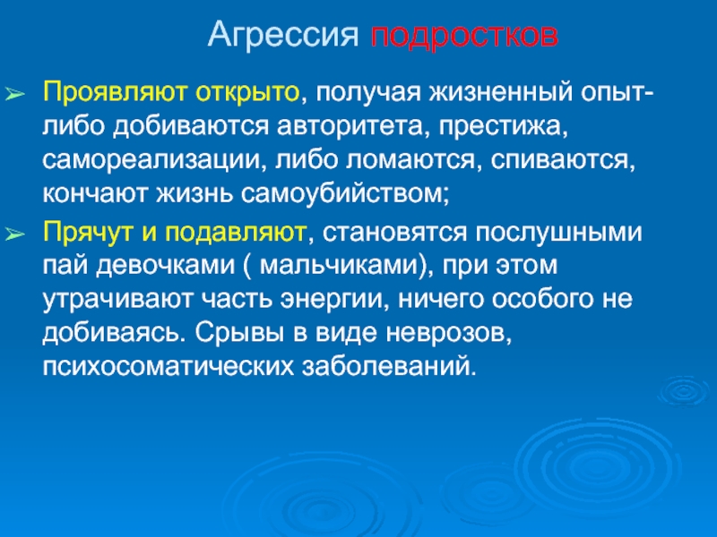 Проявляют открыто, получая жизненный опыт- либо добиваются авторитета, престижа, самореализации,