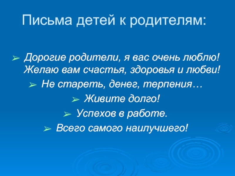 оценками?» Я хочу, чтобы вы давали мне больше любви. Чтобы в свободное время уделяли мне больше внимания. Мамы почти не бывает дома, а про папу я вообще молчу… Но зато они иногда не разрешают мне встречаться с подругами.