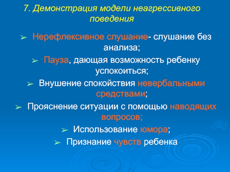 Раскрытие мотивов агрессивного поведения («Ты хочешь меня обидеть?, продемонстрировать силу?)