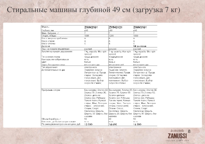 Слайд 8Стиральные машины глубиной 49 см (загрузка 7 кг)