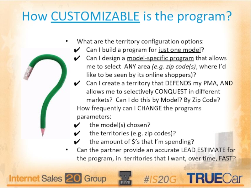 Territories to get into new market areas with unsold opportunities (based on consumer demand) to help you with your conquest marketing strategy.
