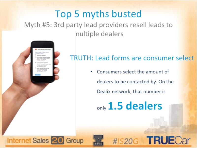 Consumers select the amount of dealers to be contacted by. On the Dealix network, that number is only 1.5 dealers