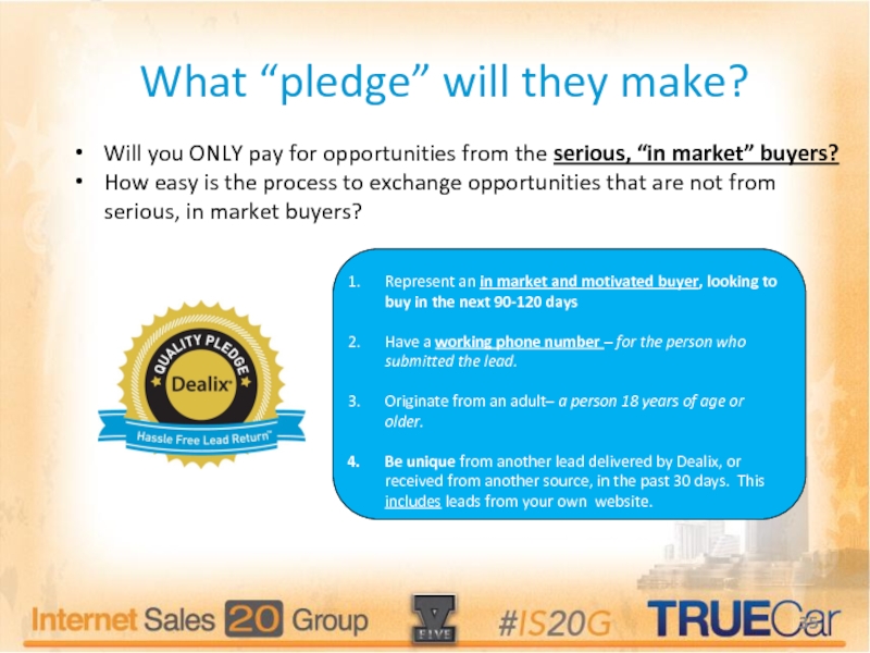Be unique from another lead delivered by Dealix, or received from another source, in the past 30 days. This includes leads from your own website.