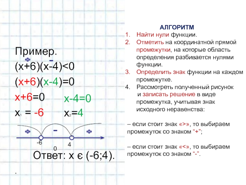 – если стоит знак «<», то выбираем промежуток со знаком “-”.