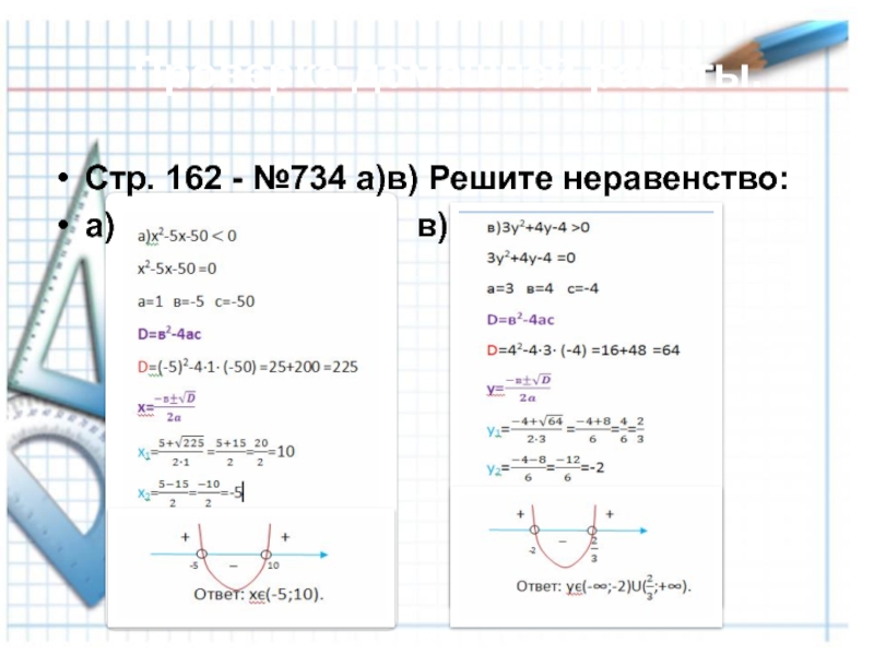 и записать решение в виде промежутка, учитывая знак исходного неравенства: