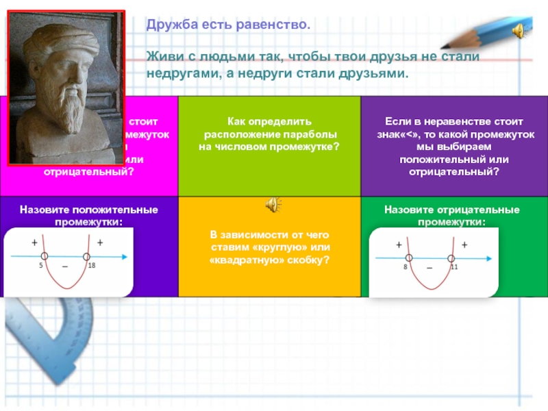 – если стоит знак «>», то выбираем промежуток со знаком “+”;