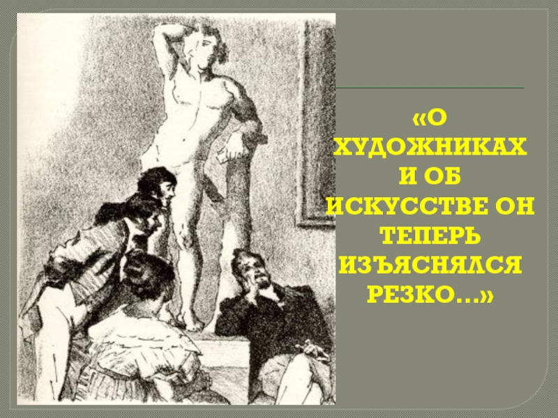 Слайд 8«О ХУДОЖНИКАХ И ОБ ИСКУССТВЕ ОН ТЕПЕРЬ ИЗЪЯСНЯЛСЯ РЕЗКО…»