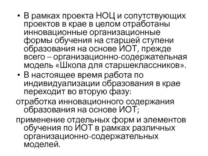 В рамках СП Пермского края понимание индивидуализации образования носит, прежде всего, социально-экономический и социально-образовательный характер - как