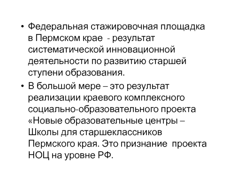 Слайд 8Федеральная стажировочная площадка в Пермском крае - результат систематической инновационной деятельности