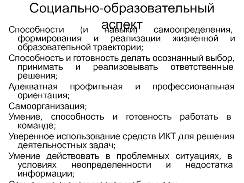 Способности (и навыки) самоопределения, формирования и реализации жизненной и образовательной
