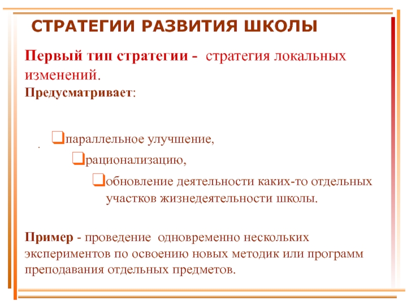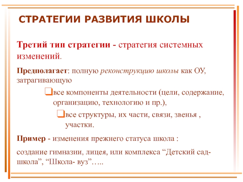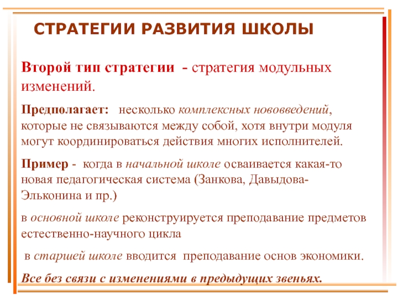 Слайд 56Стратегия перехода от прежней школы к новому её состоянию