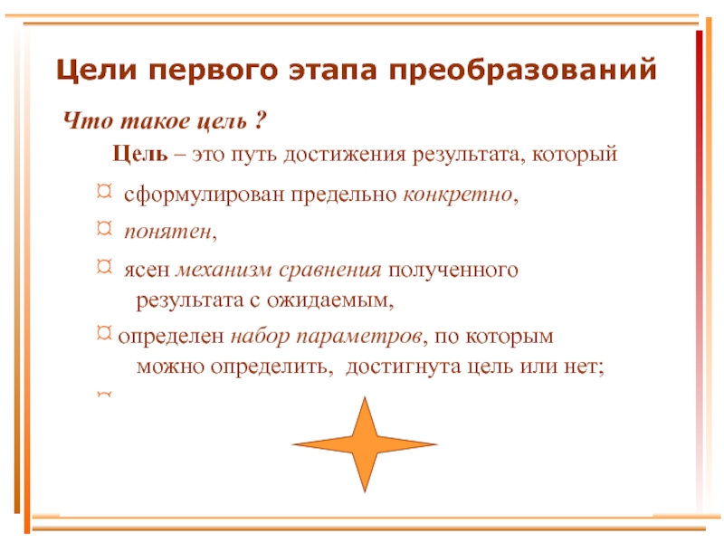 -плохо сформултрованные и иногда противоречивые цели затрудняют совершентсвование.