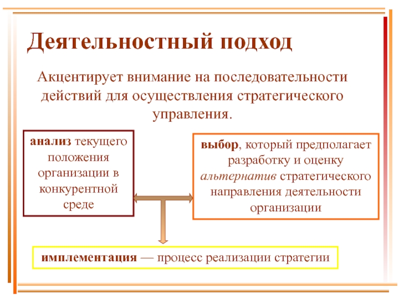 деятельностный подход, ставящий во главу угла деятельность по реализации стратегии