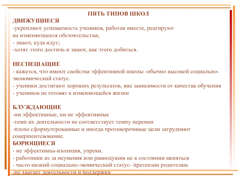 Слайд 77ПЯТЬ ТИПОВ ШКОЛ