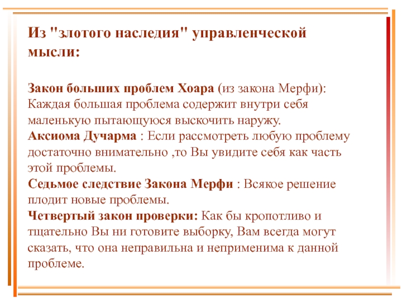 Слайд 74Из "злотого наследия" управленческой мысли: