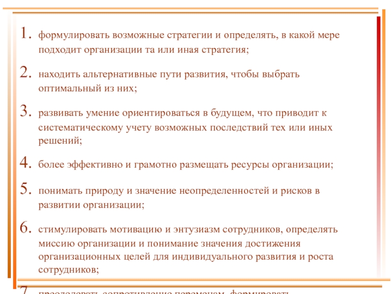 Слайд 13формулировать возможные стратегии и определять, в какой мере подходит организации та