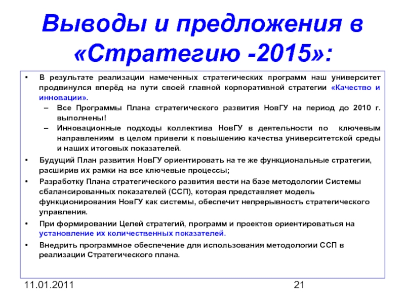 Доклад проректора по учебной работе С.В. Гудилова на учёном Совете НовГУ 25 января 2011 года