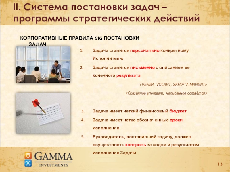 Задача ставится письменно с описанием ее конечного результата