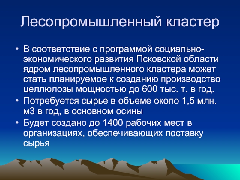 В соответствие с программой социально-экономического развития Псковской области ядром лесопромышленного