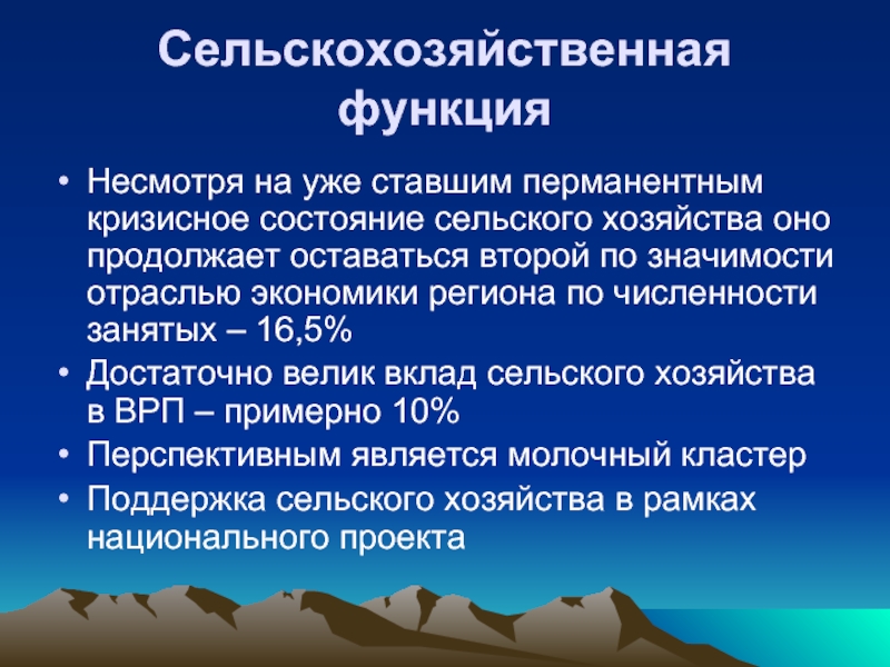 заключается в кризисе традиционных отраслей специализации и, прежде всего, сельского хозяйства