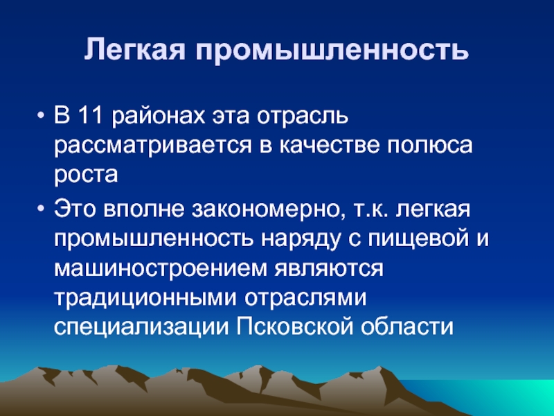 вполне закономерно, т.к. легкая промышленность наряду с пищевой и машиностроением являются традиционными отраслями специализации Псковской области