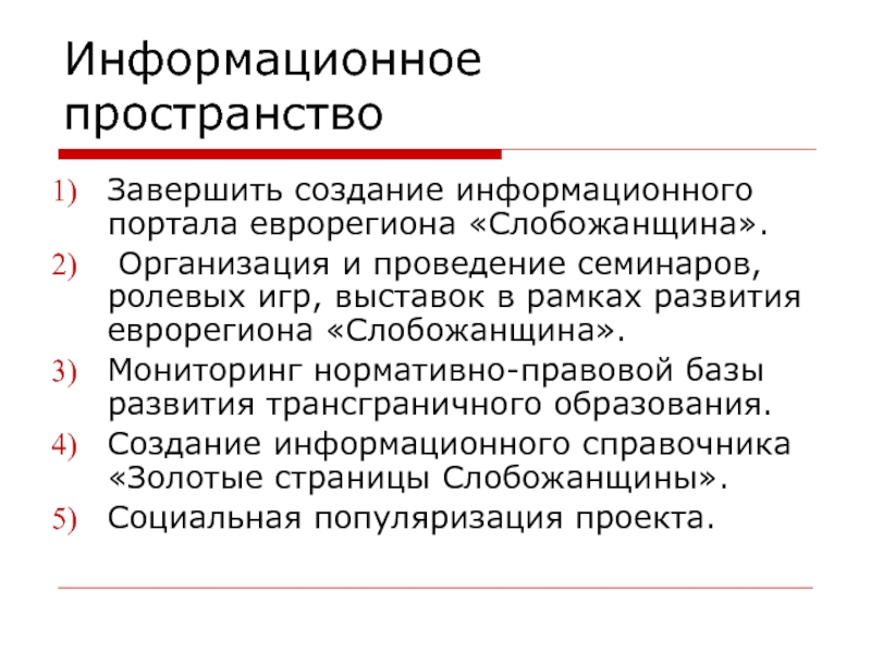 Завершить создание информационного портала еврорегиона «Слобожанщина».