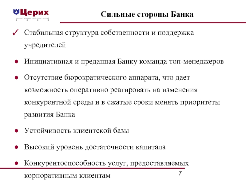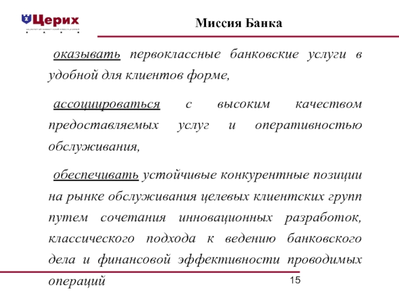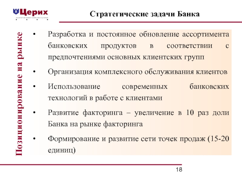 фокусирование деятельности Банка на определенных сегментах рынка банковских услуг и обретение своей рыночной ниши