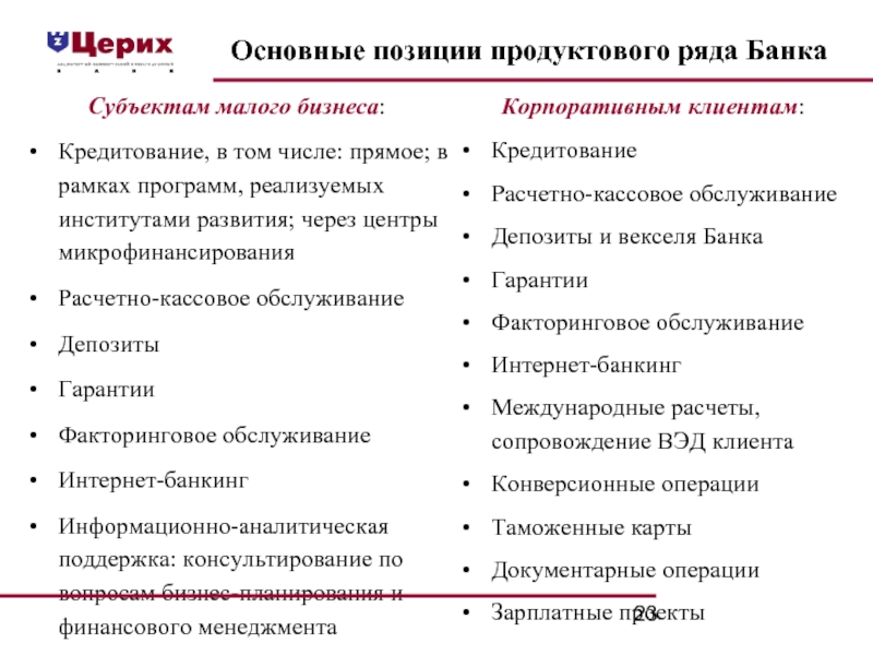 Спрос на банковские услуги на целевых для Банка клиентских сегментах: обслуживание предприятий малого бизнеса, корпоративной клиентуры, а также состоятельных частных лиц