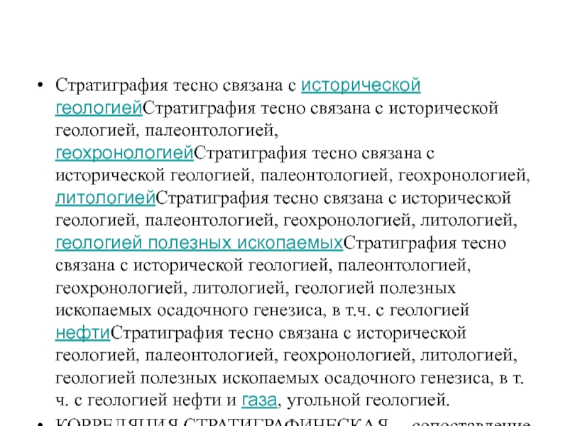 палеонтологией, геохронологиейСтратиграфия тесно связана с исторической геологией, палеонтологией, геохронологией, литологиейСтратиграфия тесно связана с исторической геологией, палеонтологией, геохронологией, литологией, геологией полезных ископаемыхСтратиграфия тесно связана с исторической геологией, палеонтологией, геохронологией, литологией, геологией полезных ископаемых осадочного генезиса, в т.ч. с геологией нефтиСтратиграфия тесно связана с исторической геологией, палеонтологией, геохронологией, литологией, геологией полезных ископаемых осадочного генезиса, в т.ч. с геологией нефти и газа, угольной геологией.