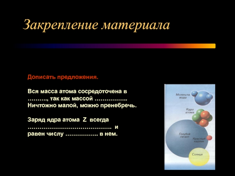 Сформировать знания в области строения атома