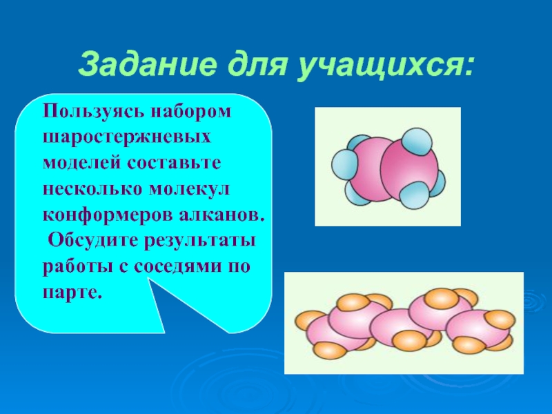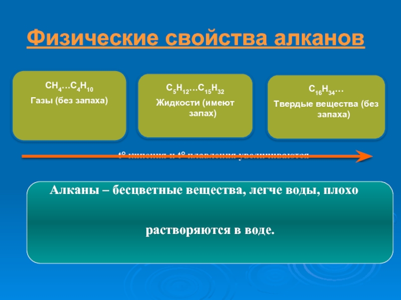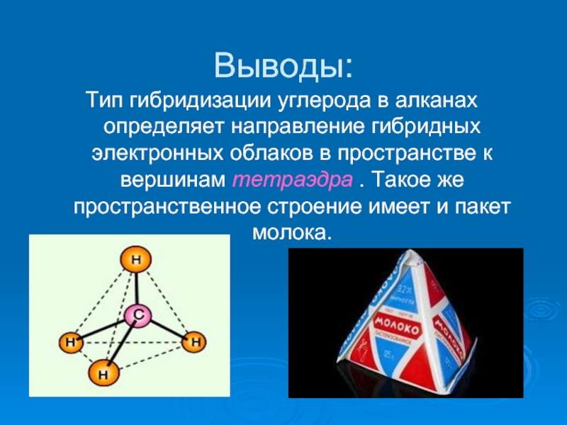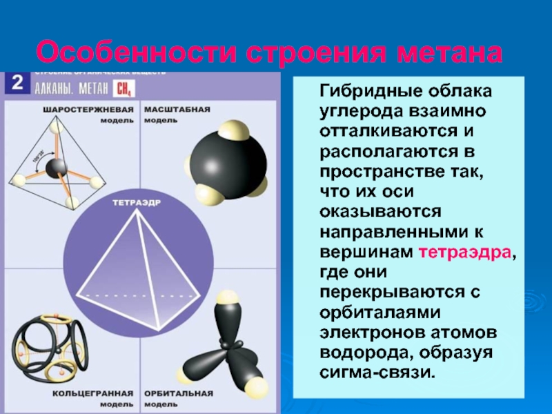 В молекулах алканов имеются только одинарные - связи. Все четыре валентности атома углерода в молекулах алканов полностью, т.е. до предела, насыщены атомами углерода и водорода. Между атомами углерода отсутствуют кратные связи. Отсюда происходят другие названия этих углеводородов - насыщенные или предельные.