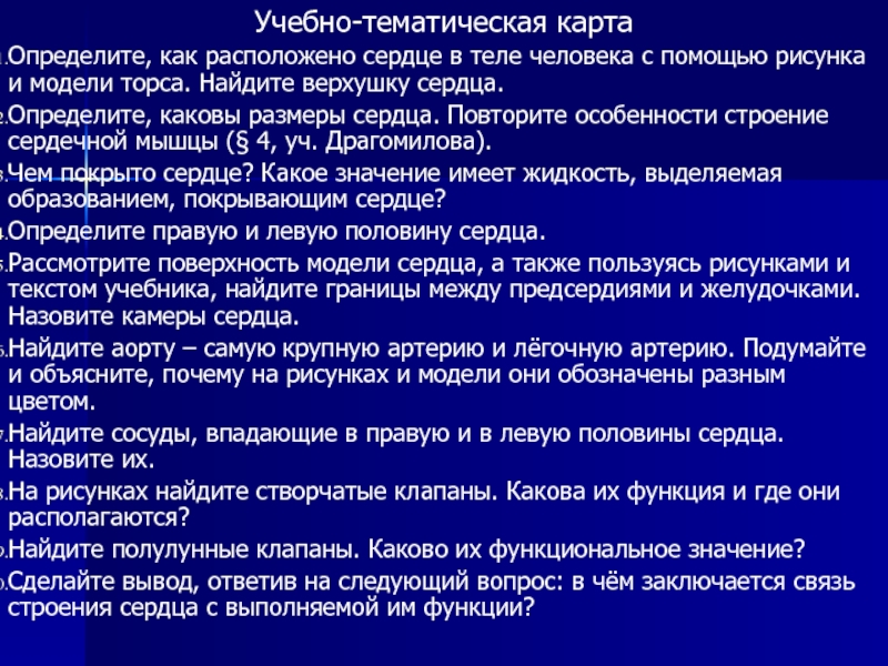 Определите, каковы размеры сердца. Повторите особенности строение сердечной мышцы (§ 4, уч. Драгомилова).