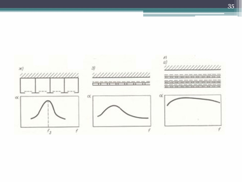 2 – звукопоглощающий слой нанесён непосредственно на стену, максимум скорости находится вне слоя, его эффективность уменьшается;
