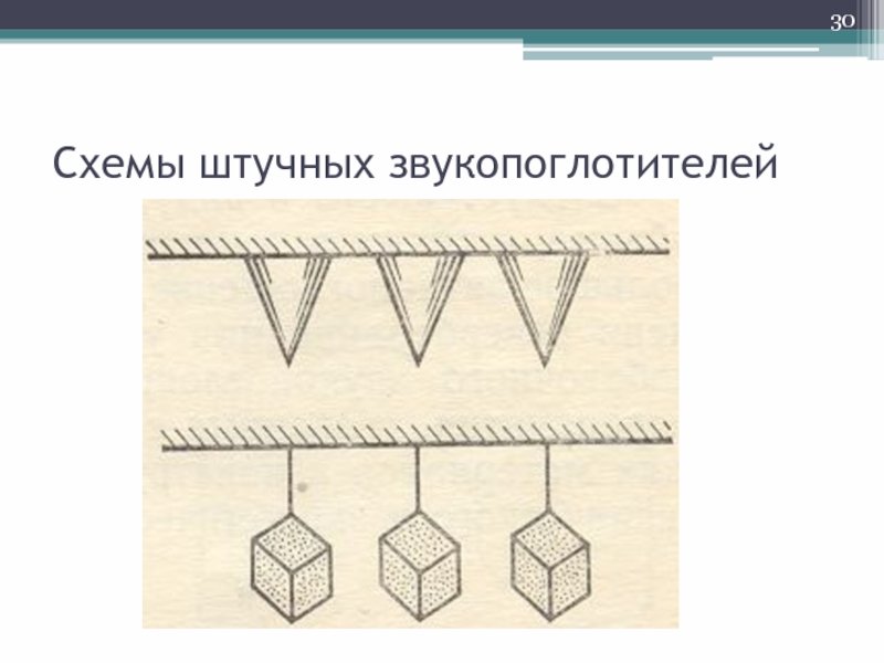 Отделка из досок с профилированными каймами, шлицевые плиты, перфорированные гипсокартонные плиты, панели из лёгкого металла, тяжёлая мягкая мебель.