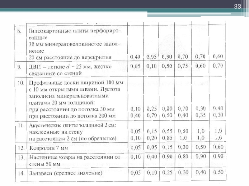 3 – коэффициент звукопоглощения α плиты из минерального волокна толщиной 40 мм;