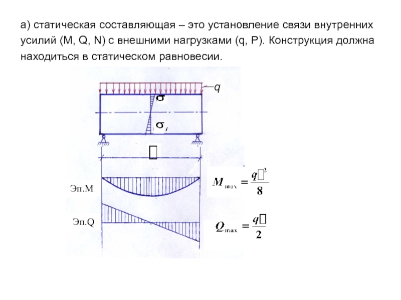 Внешняя нагрузка (распределенная, сосредоточенная), приложенная к любому телу, порождает внутренние усилия в нём. Внутренние усилия – это продольные (N) и поперечные (Q) силы, изгибающие и крутящие моменты (M и Mкр) и другие.