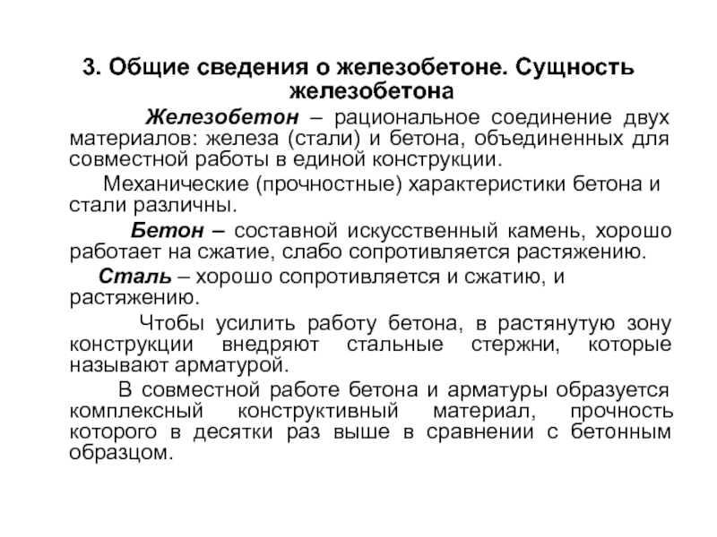 Железобетон – рациональное соединение двух материалов: железа (стали) и бетона, объединенных для совместной работы в единой конструкции.