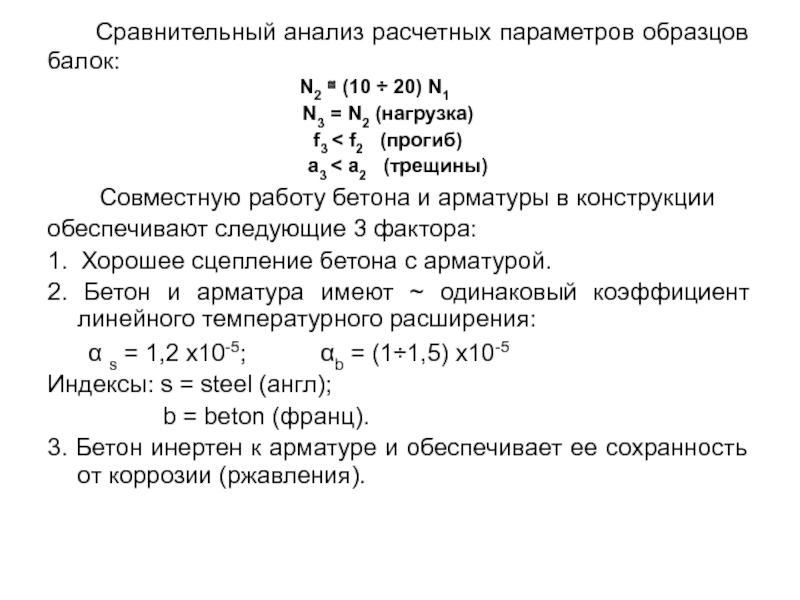Слайд 19 Сравнительный анализ расчетных параметров образцов балок:
