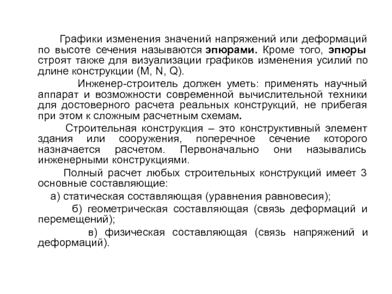 Инженер-строитель должен уметь: применять научный аппарат и возможности современной вычислительной техники для достоверного расчета реальных конструкций, не прибегая при этом к сложным расчетным схемам.
