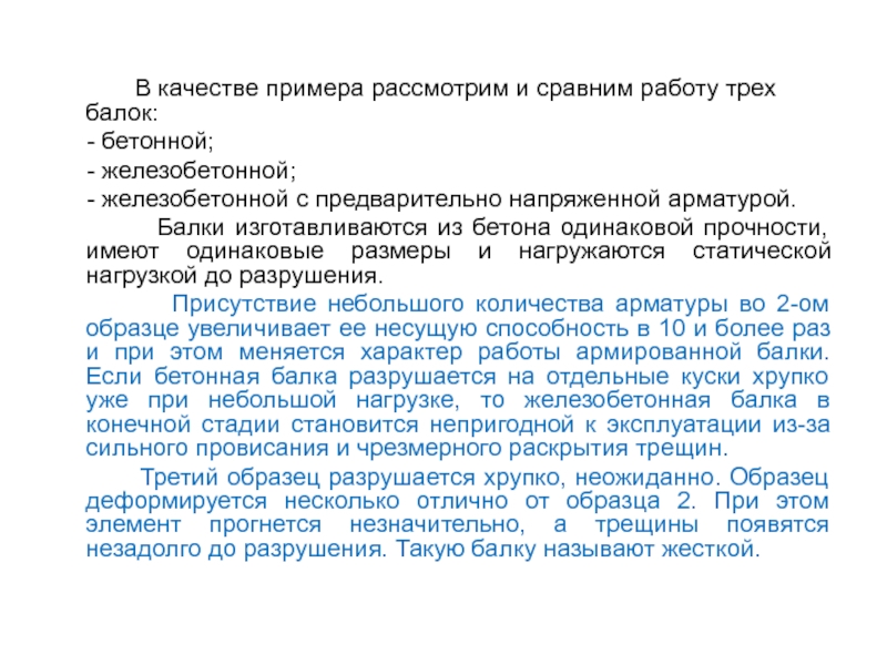 Балки изготавливаются из бетона одинаковой прочности, имеют одинаковые размеры и нагружаются статической нагрузкой до разрушения.