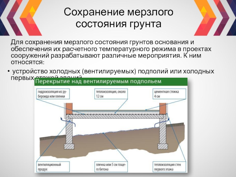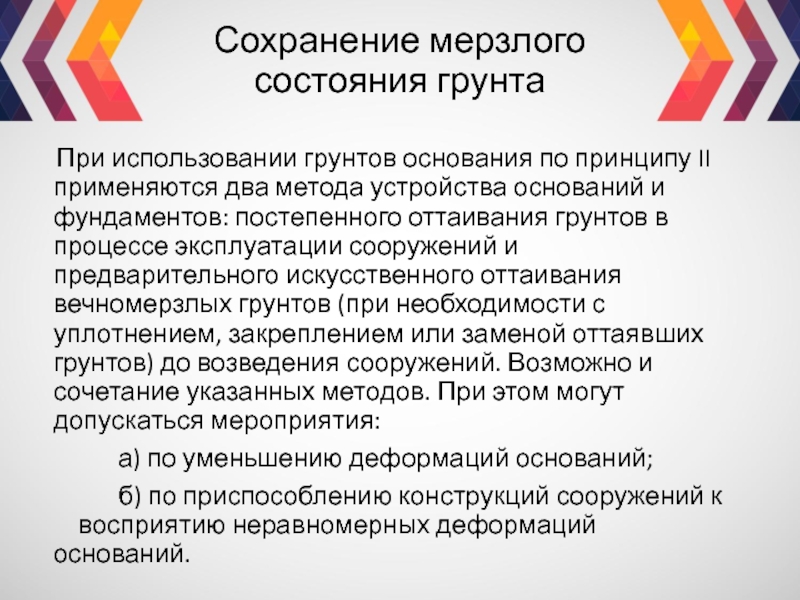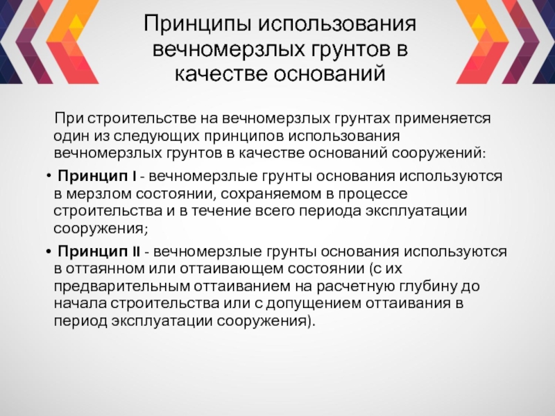 Слайд 9Принципы использования вечномерзлых грунтов в качестве оснований